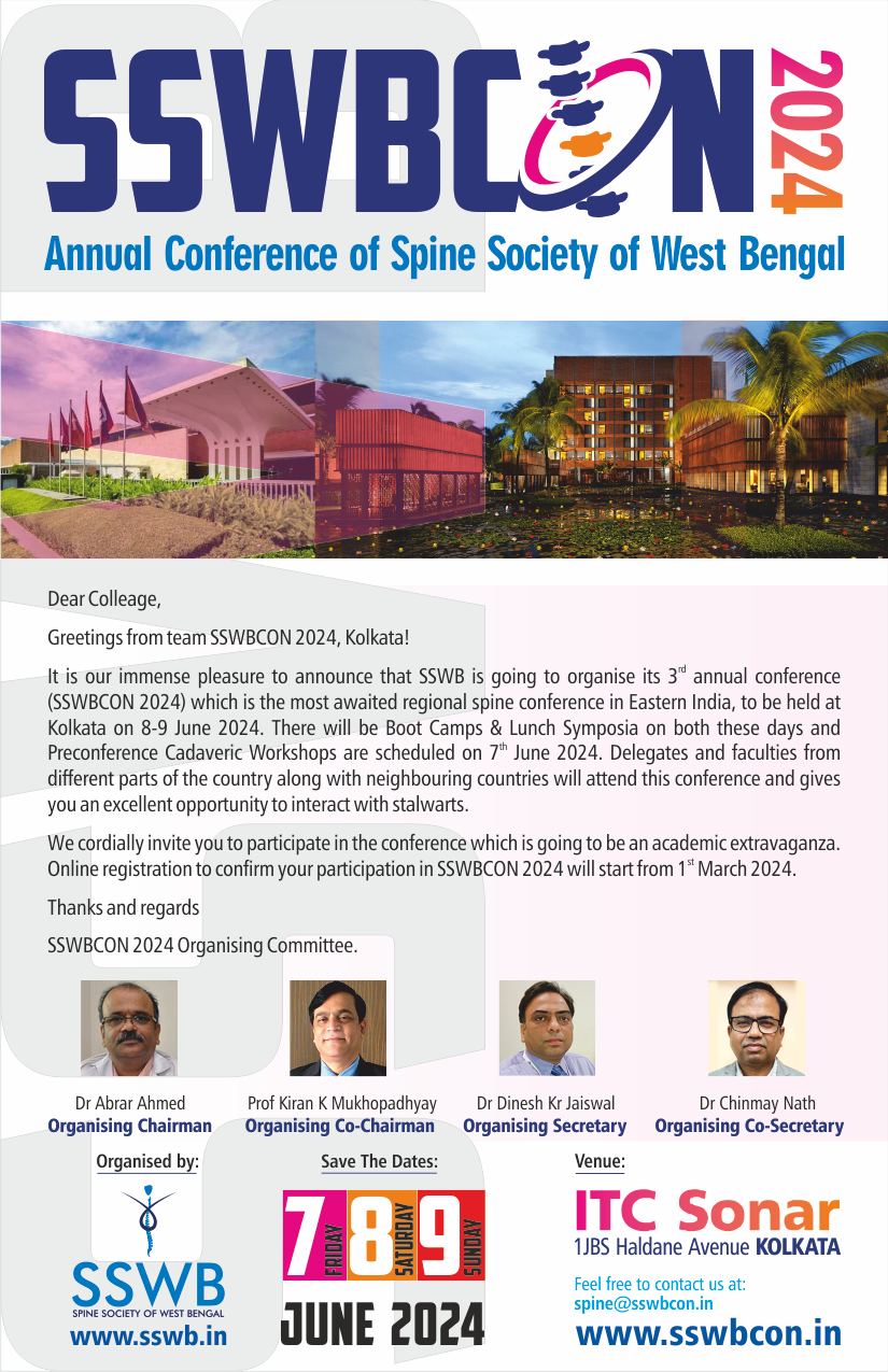 Dr Abrar AhmedGreeting from Spine Society of West Bengal. It gives me immense pleasure to invite you all for eagerly